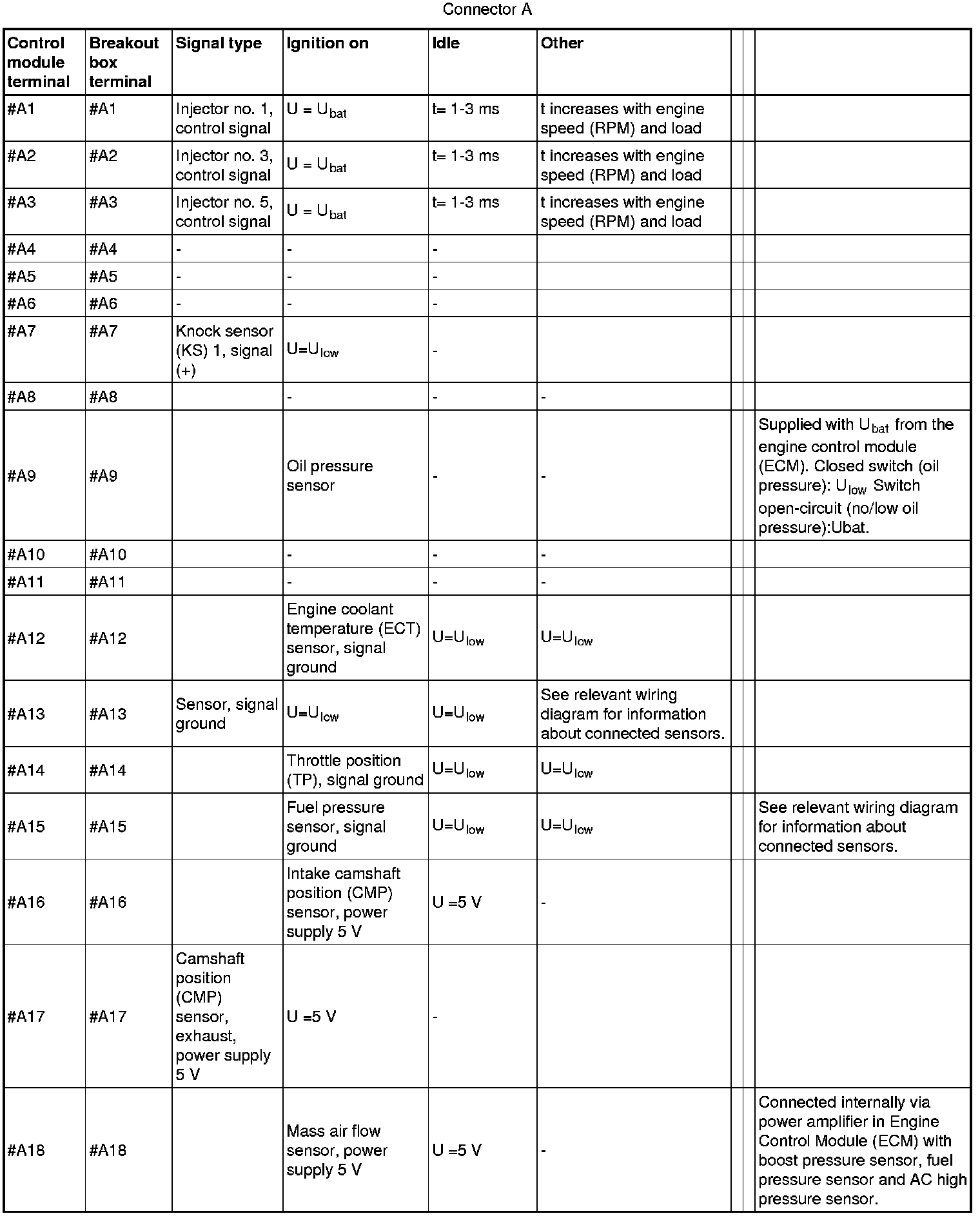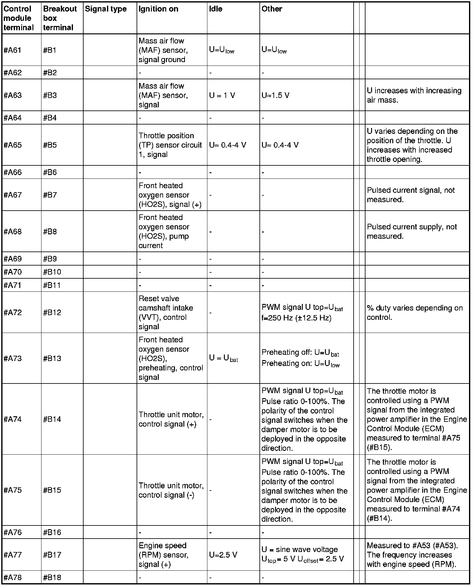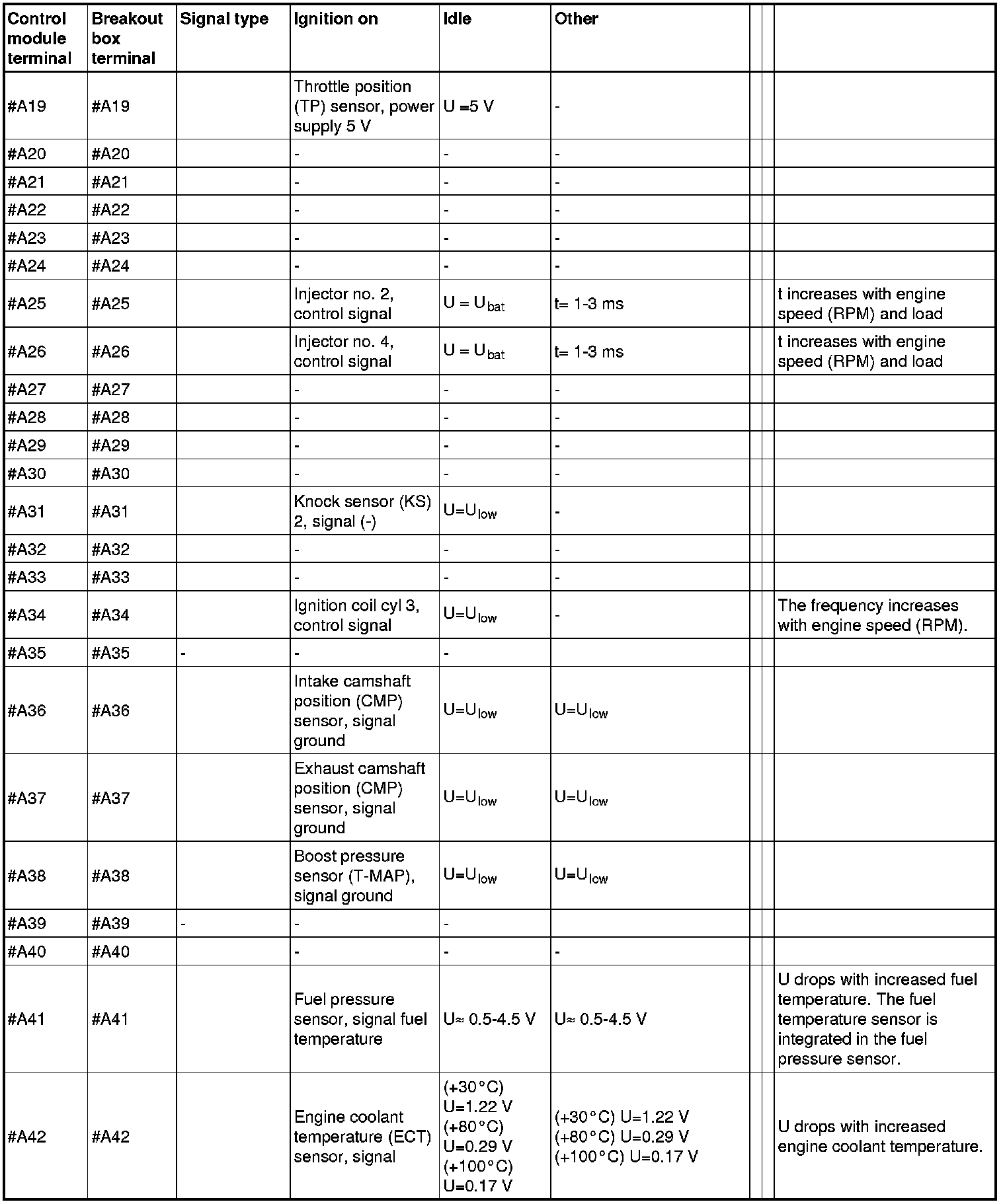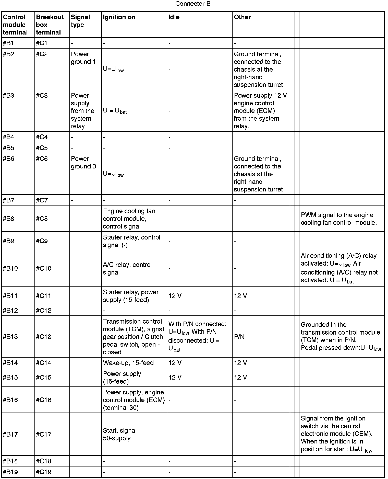 All values given below are between the terminals stated in column 1 and breakout box terminal in the terminal) and terminal #B1 (#C1) unless otherwise indicated in column 6 (Miscellaneous).
