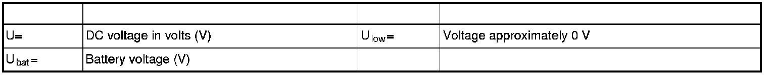 All values below are measured between the relevant terminal in column 1 and terminal #2F in column 2 (power ground). Unless otherwise stated in parenthesis after the table entry.