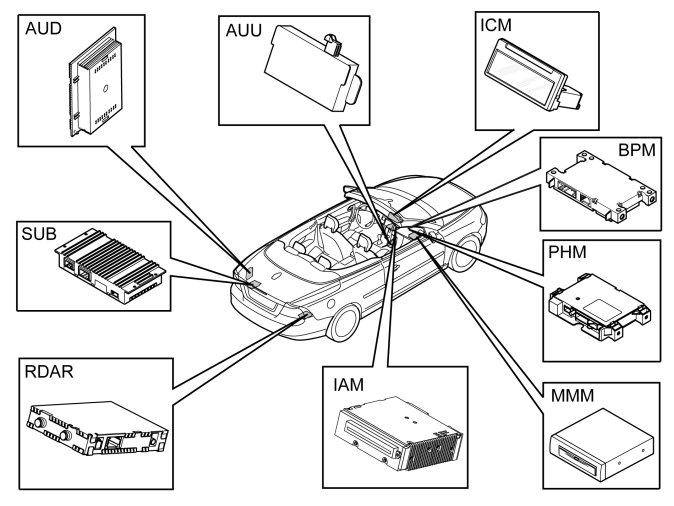The vehicle is always equipped with an Infotainment control module (ICM) and Integrated Audio Module (IAM).