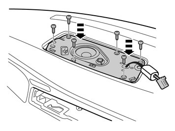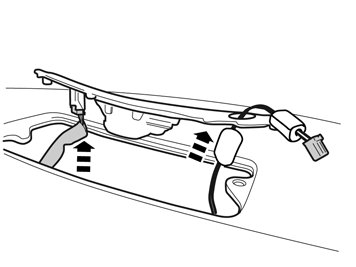 - Take the loudspeaker grille with GPS holder and connect the routed connector.