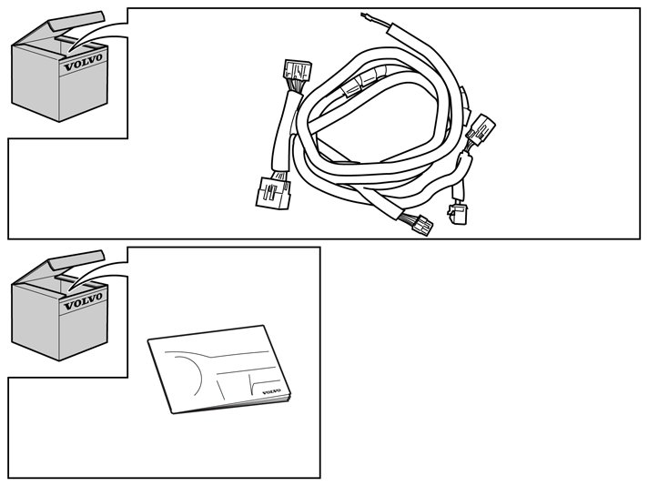 Note! The installation kit may contain two types of cable harness. A single cable harness (A in kit image), or a dual cable harness (B and C in the kit image).