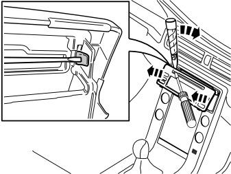 - Remove the panel around the display and media player. Use a small screwdriver and press in the catch in one of the panel's upper corners. Carefully bend loose the radio panel on the same side with a plastic pry tool.