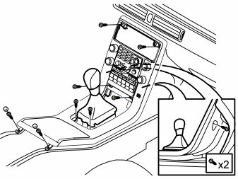- Remove the covers and screws in the rear edge of the upper panel section of the centre console, remove the screws on the rear of the panel and then remove the remaining screws on the top, ten in total.