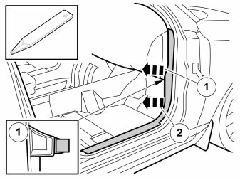 - Pull the sill panel backwards with a weatherstrip tool so that the two clips release.