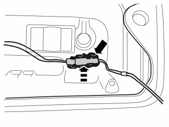 - Secure the connected connectors at the bottom of the space where the loudspeaker was, using a piece of butyl tape.
