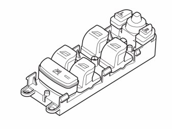 Note! The illustration shows the control panel for the driver door in a left-hand drive car. The control panel and numbering in a right-hand drive car is the mirror image of left-hand drive.
