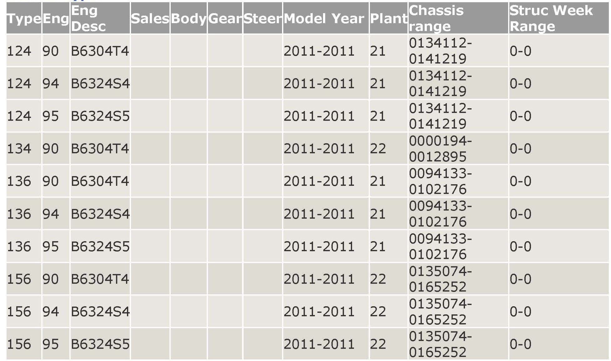 At structure week 2010w41 (see chassis range above), Engine Control Module (ECM) software and TCM software have been improved in the following areas: