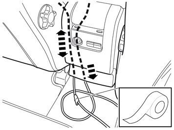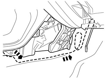 - Connect the cable from the holder to the cable routed to the rear edge of the glove box. Ensure that the cable goes under the member.