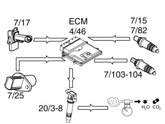 The valve for variable intake is controlled by the engine control module (ECM) (4/46).