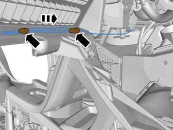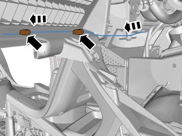 - Continue to route the aerial with cable, from the right air duct in the centre console, and then along the rear edge of the dashboard to the right.