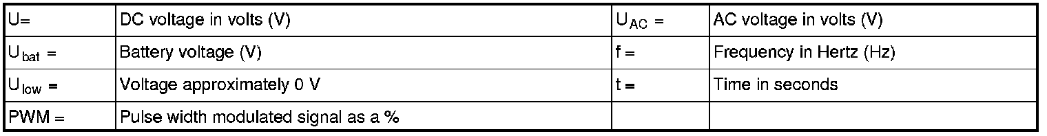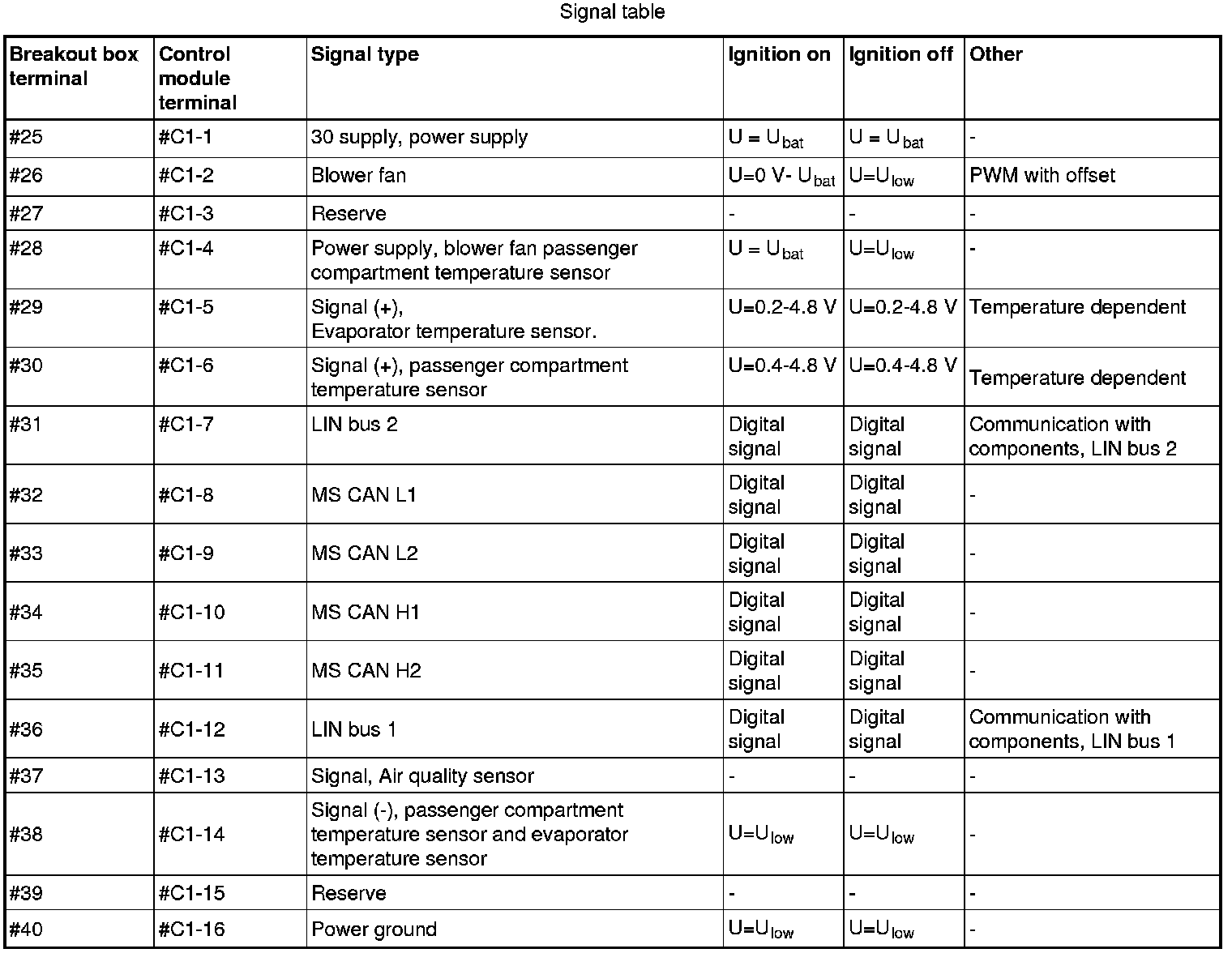 All the values given below are between the terminals stated in column 1 and terminal #40 in column 1 (power ground). This applies unless otherwise indicated in brackets.