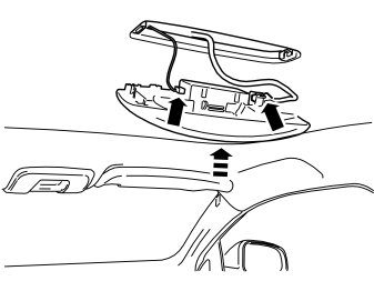 - Take the new reading lamp and sensor from the kit. Press the sensor into the reading lamp. Make sure that all catches have engaged. The connector in the sensor must point to the left and the connector in the lamp to the right when the unit is reinstalled in the car.
