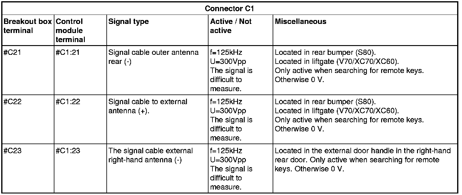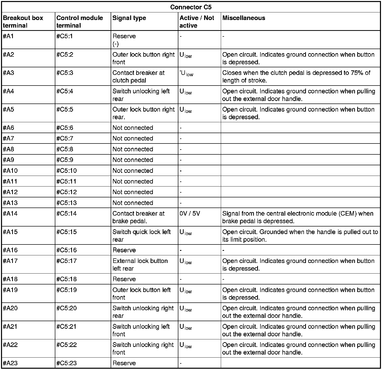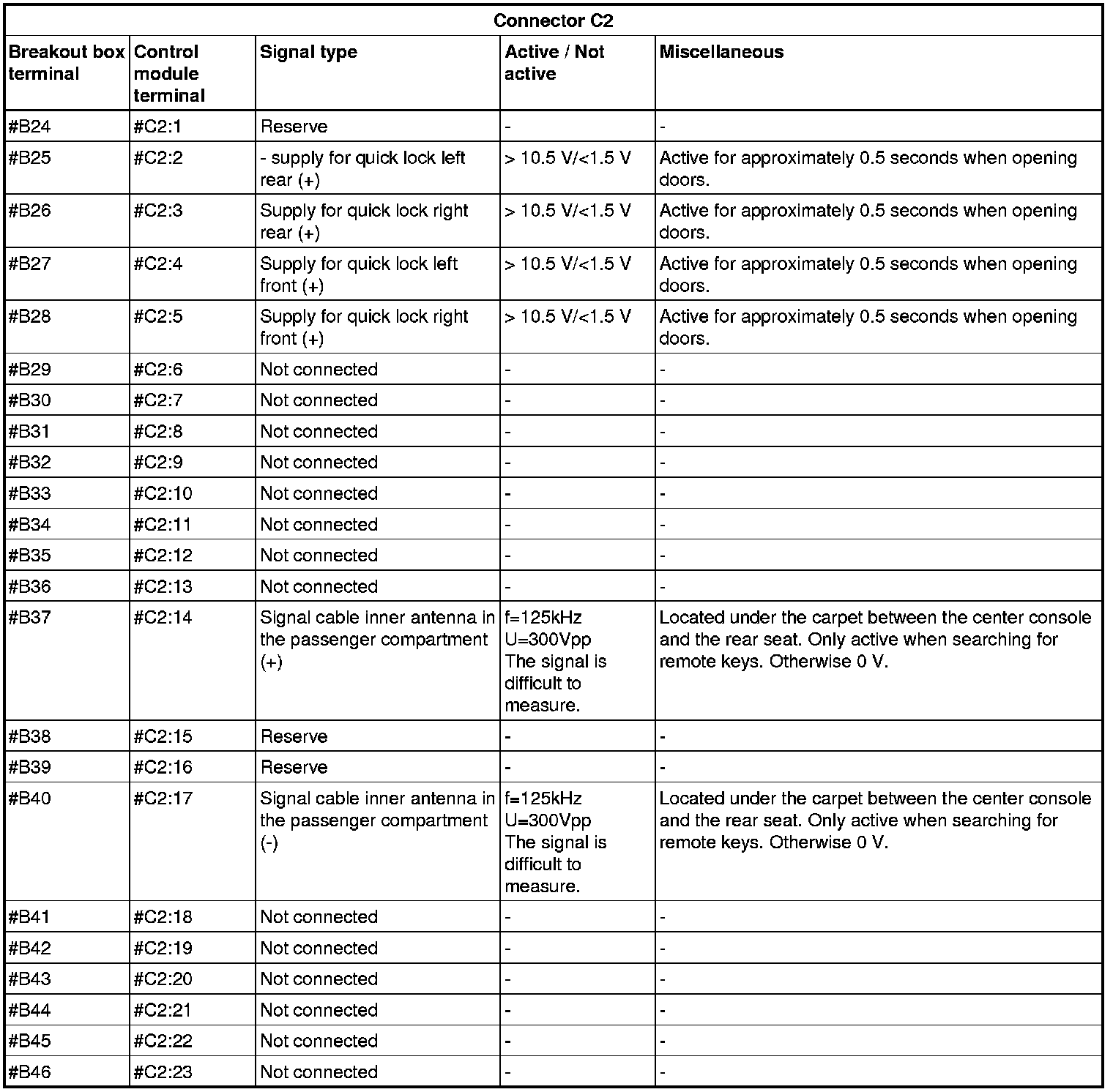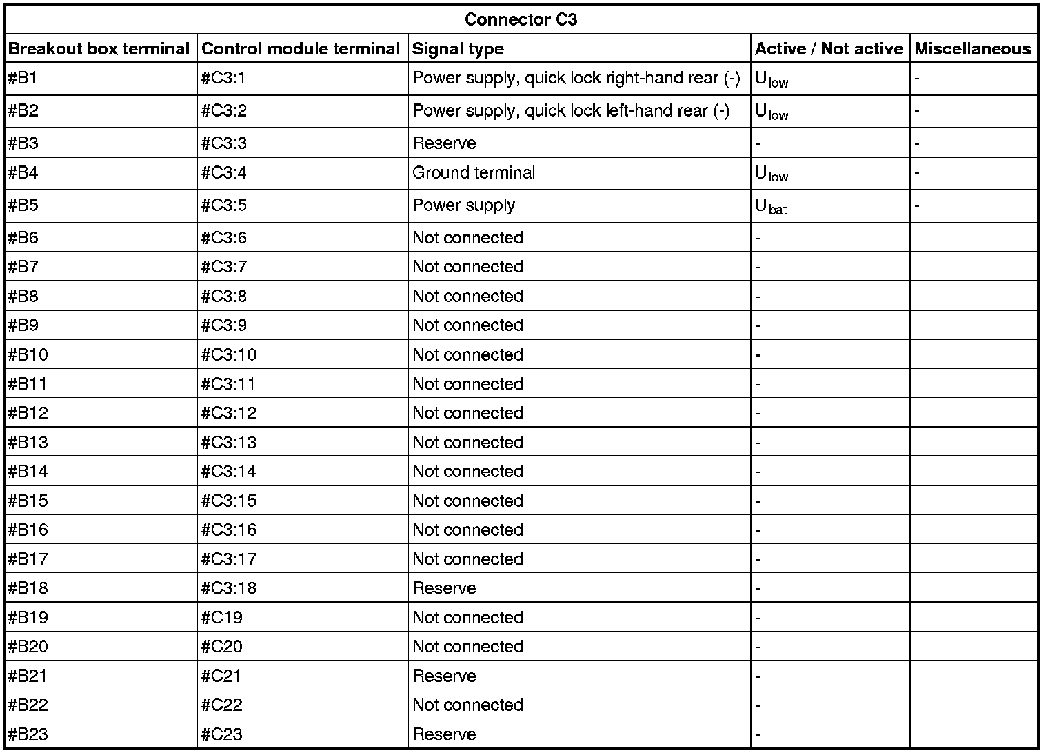 All values given below are between the terminals stated in column 1 and terminal #B4 (power ground). This applies unless otherwise indicated in brackets.