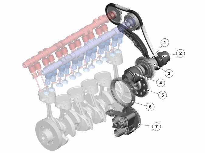 An internal vibration damper is on the front end of the crankshaft. Inside the enclosed vibration damper, a circular flywheel works on a silicone fluid, which dampens the crankshaft torsion oscillations. The vibration damper gives longer service life for the crankshaft and smoother engine operation.
