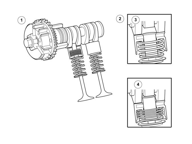 The exhaust camshaft is conventional and has a lift height of 10.0 mm. The valve depressors are mechanical, that is, they "have" valve clearance.