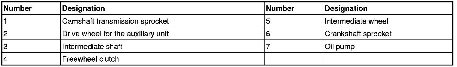 The intermediate shaft is located in the gear housing on the cylinder block. The intermediate shaft drives the camshafts and the auxiliary unit.