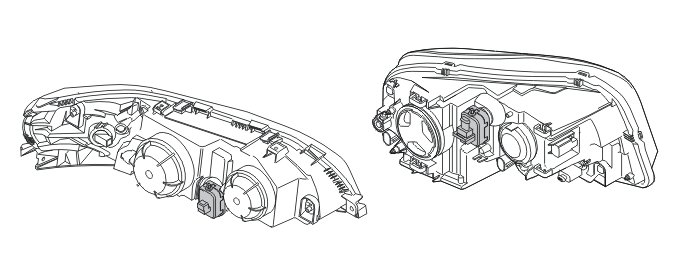 Warning! Both drive stages, which are built into the lamp housing, and the wiring for the Bi-Xenon lamps are high voltage.