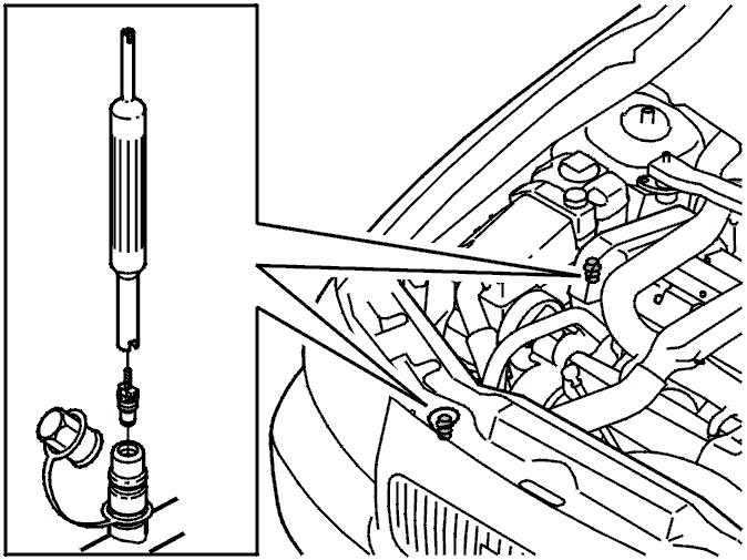 - Remove the needle valve in the service valve using valve tool 951 1204 REMOVAL TOOL 951 1204 Removal Tool.