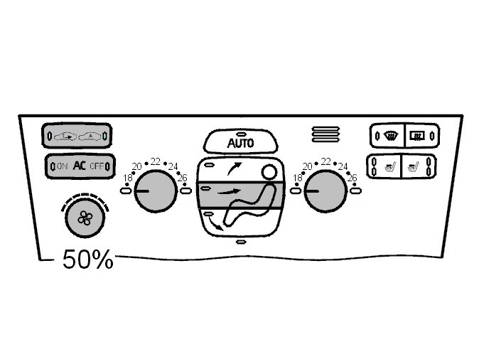 - Set the recirculation button to "On". Cars with air quality sensor (AQS) to "man"