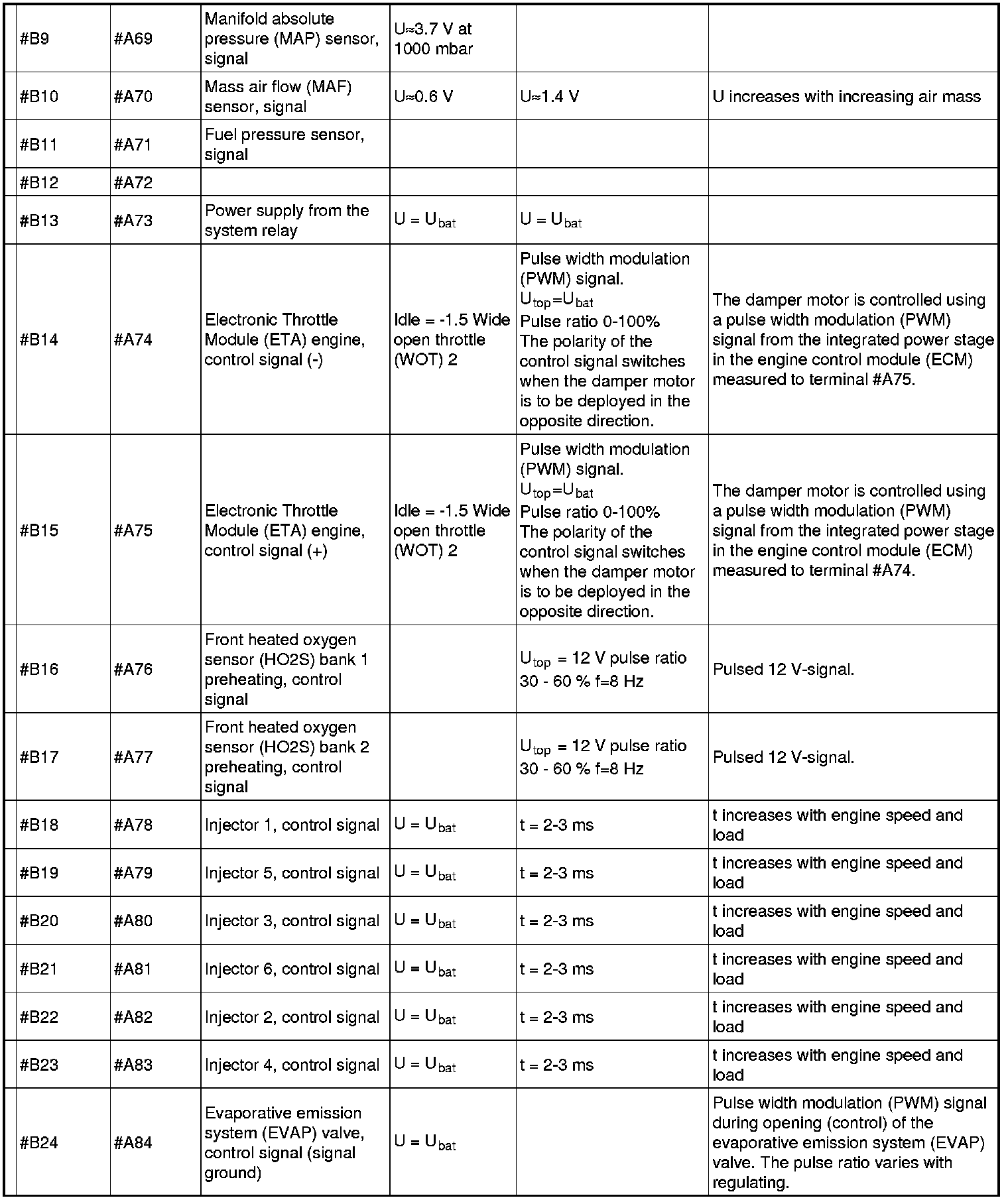 All values indicated below are between respective connection in column 1 and #A C2 on the breakout box. If this is not the case, it is indicated within brackets.