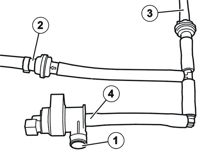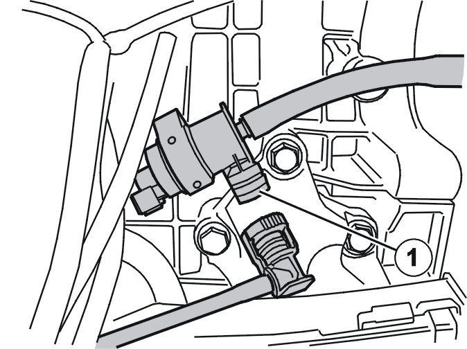 The EVAP-pump sucks in hydrocarbons through the line mounted with quick-coupling (1). The hose (2) receives vacuum since it is connected to the inlet manifold.
