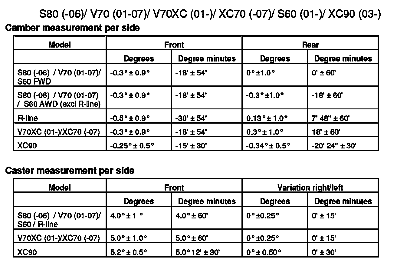Note! All published toe values are for total toe measurement (left and right wheels together).
