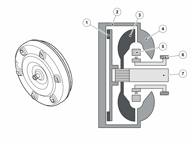 The torque converter functions like a hydraulic automatic clutch. At idle, the pump action is too weak to drive the turbine rotor and thus the vehicle is stationary. When the engine speed is increased the turbine rotor starts to drive in a smooth way. Thanks to the stator rotor, the torque converter can also reinforce the engine's torque when starting and low driving speed.