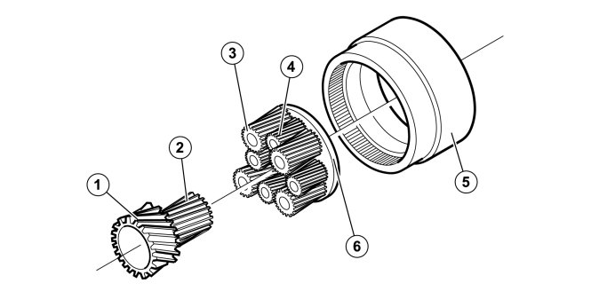 The number of planetary gears depends on the engine's cylinder displacement and can therefore differ from what is shown here.