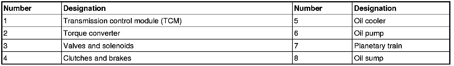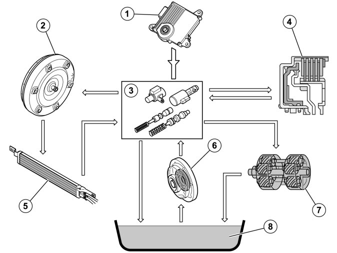 The transmission's hydraulic system consists of oil pump, torque converter, hydraulic control system and oil cooler.