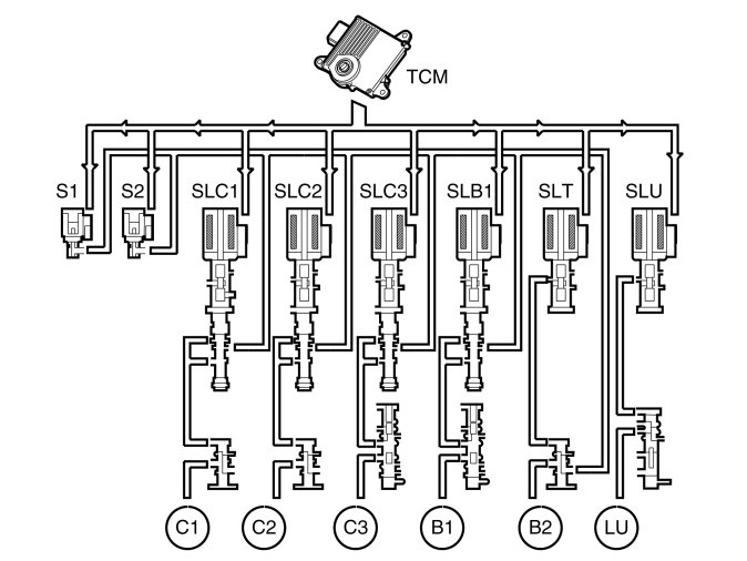 Shifting occurs by the oil pump building up hydraulic pressure. The hydraulic valves, which are controlled by their respective solenoids, send the hydraulic pressure to the relevant clutch, brake or lock-up depending on which signals come from the Transmission control module (TCM).