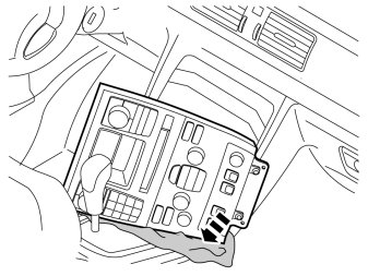 - Lay out a cloth to protect the tunnel console and unit. Place as illustrated. Depending on the design the cable may need to be disconnected and the unit placed to one side.