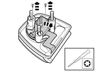 - Take special tool 9814104 (torx driver, torx 6), and unscrew the two screws holding the connector in the holder.