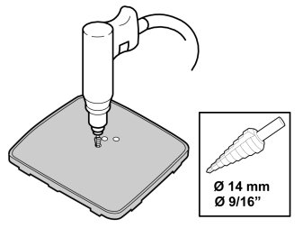 - Drill up the three holes for the cradle's feet using a -14 mm (9/16") step drill.