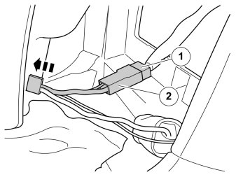 - Take out the unit with the climate panel and connect connector (1) removed from the 12V outlet on the female connector (2) on the routed cable.