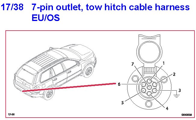 17/38 7-Pin Outlet, Tow Hitch Cable Harness EU/OS