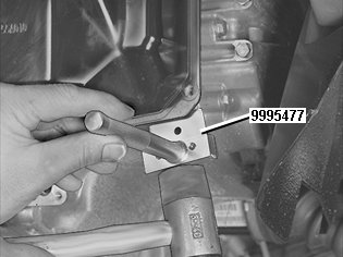 Use joint wedge 999 5477 JOINT WEDGE 999 5477 Joint Wedge , which is carefully tapped in between the cover and transmission so that the cover's sealing flange is not warped.