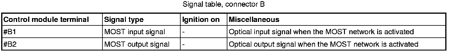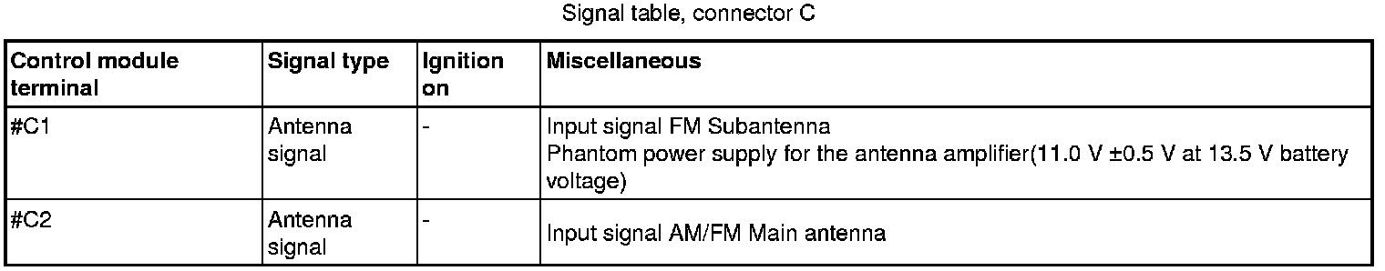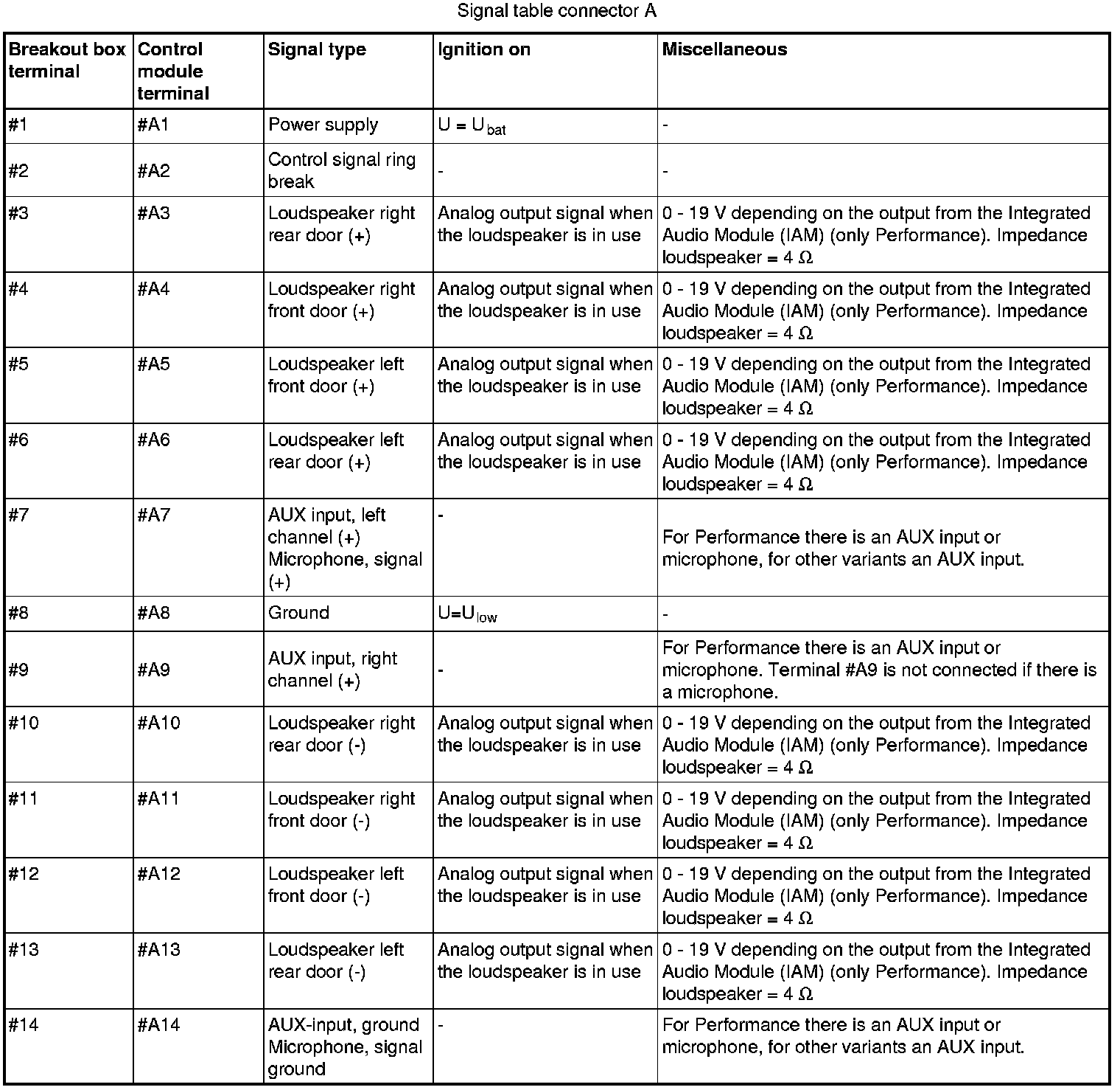 All the values given below are between the terminals stated in column 1 and terminal #A8 in column 2 (power ground). This applies unless otherwise indicated in brackets.