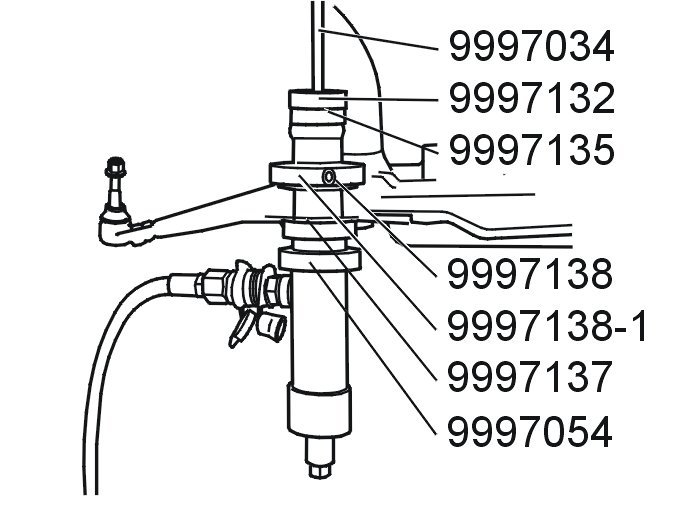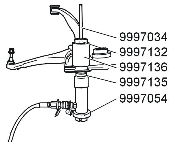 Pull in the bushing until it is centered in the link arm. Pull the bushing in approximately halfway and then remove: 999 7134 Conical socket 999 7134 Conical Socket.