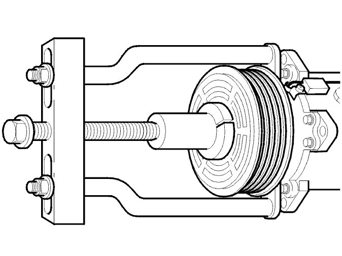 Install a new belt pulley. Use: 999 5598 Puller 999 5598 Puller and: 999 5600 Socket with ring 999 5600 Socket With Ring.