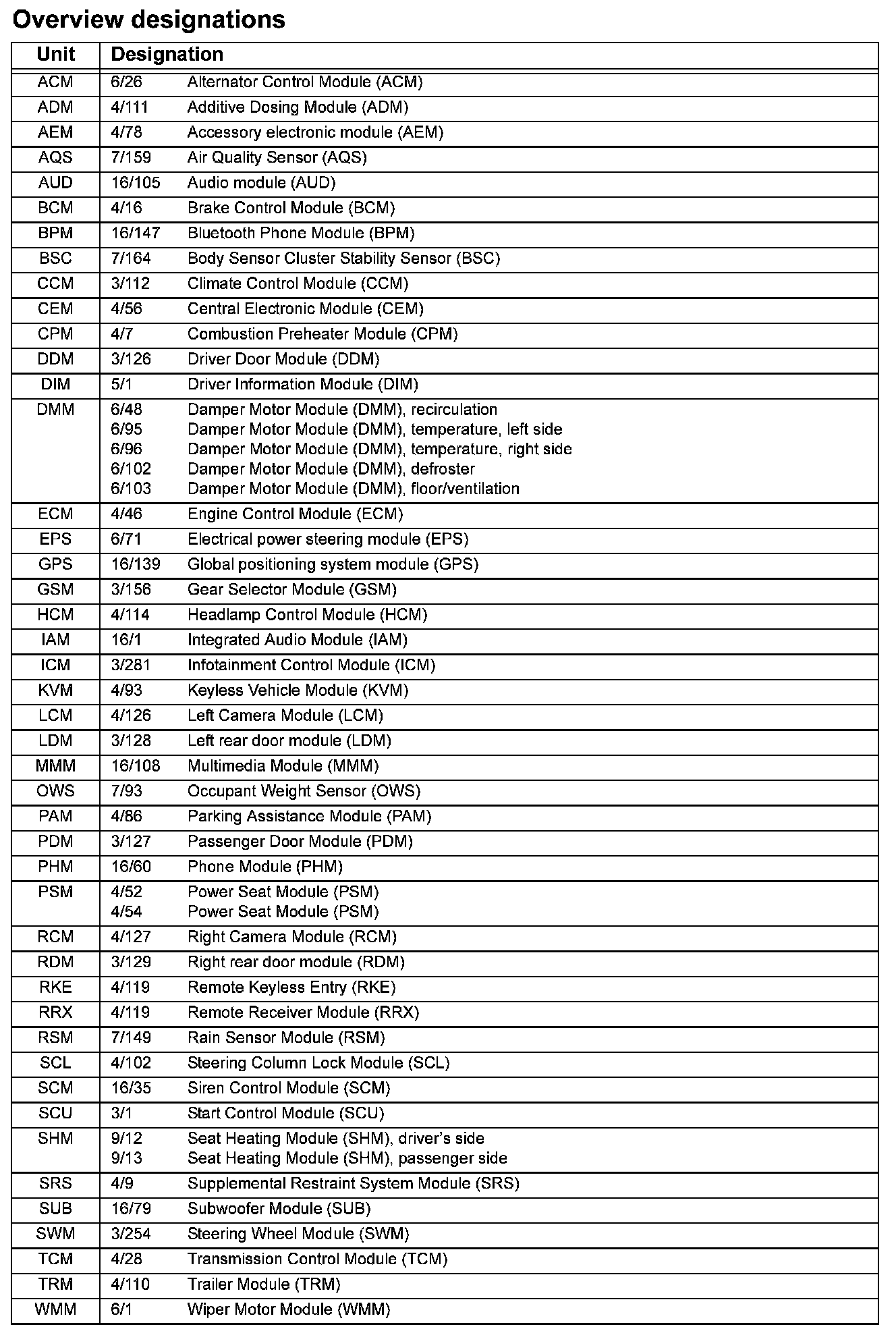 Overview designations