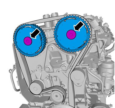 Install timing belt Refer to: Timing belt, B5254T7 Service and Repair