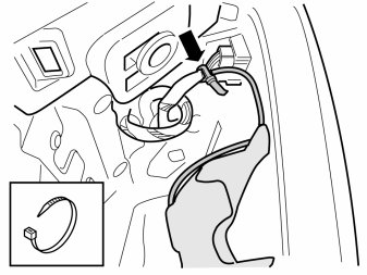 - Clamp the wire to the connector's cable harness so that the wire reaches down to the holder and so that it fits in the slot in the panel.