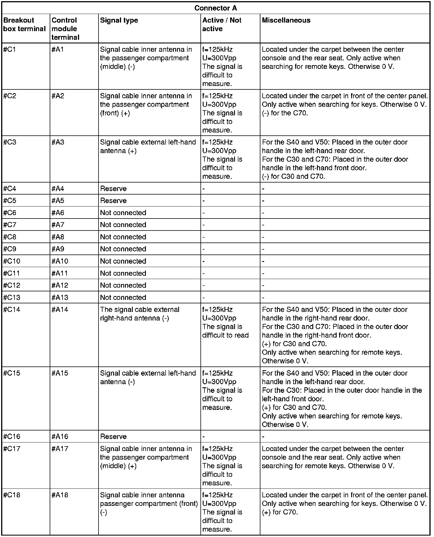 Signal specification, keyless vehicle module (KVM)