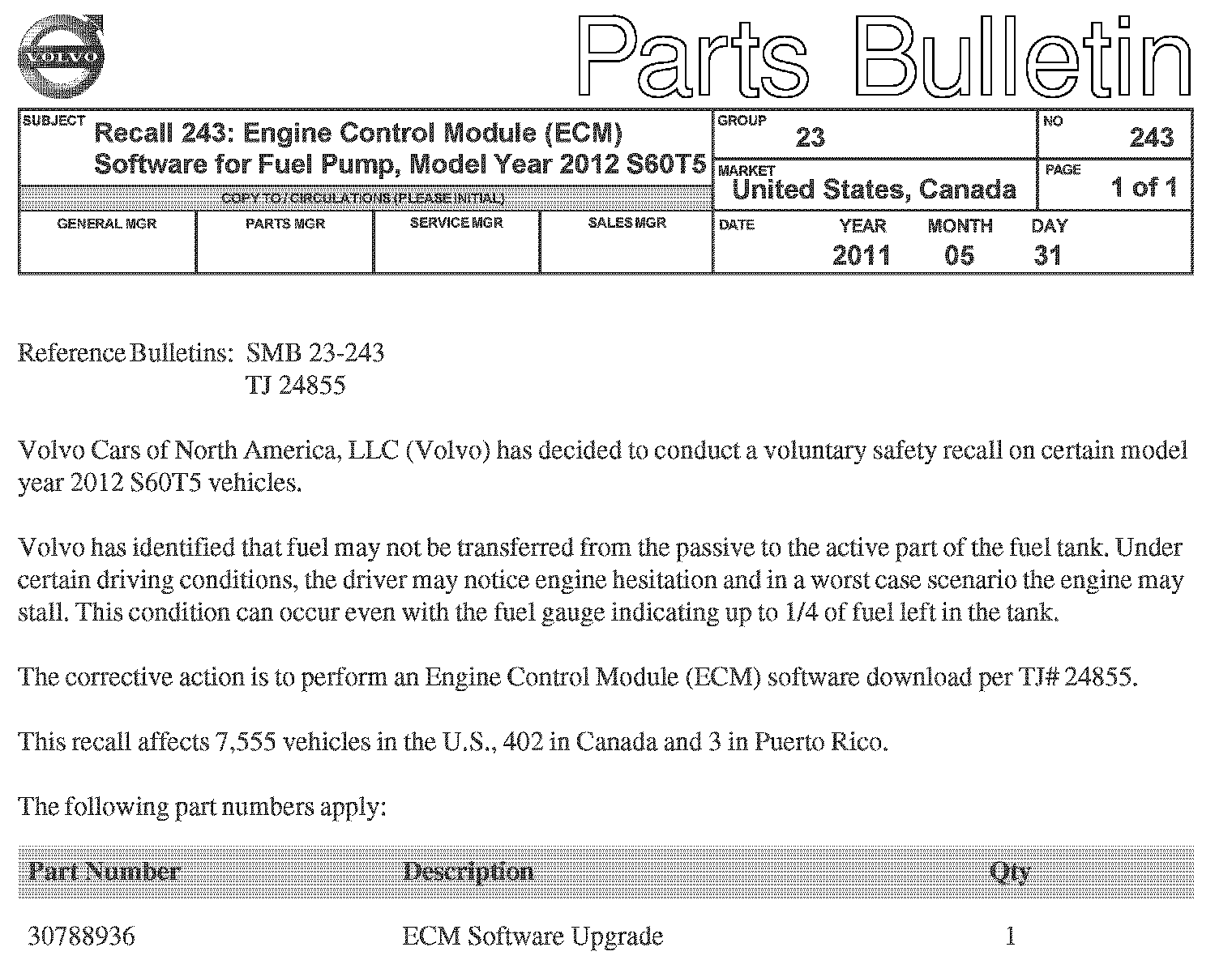 Parts Bulletin - 23-243