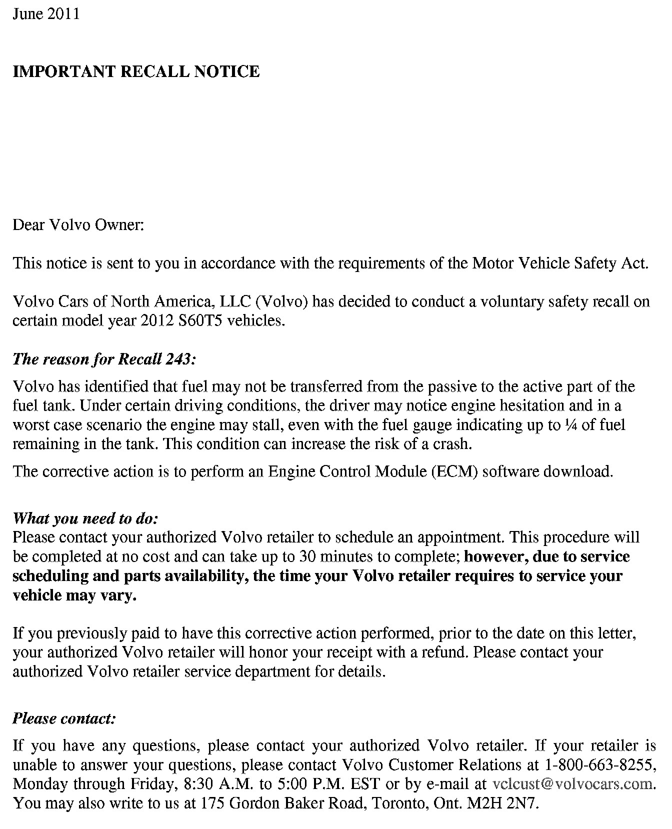 Recall - ECM Update For Fuel Pump Function/Stalling