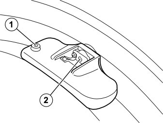 Caution! When installing the tire onto the wheel:Ensure that the sensor is properly attached in the wheel before installing the tire.Lubricate the tire edges using tire mounting paste to facilitate installation.There must not be any tire mounting paste or foreign particles covering the air filling hole (1), or the hole (2) for reading off the air pressure on the sensor.Do not exert any pressure on the sensor when installing the tire.Ensure that the tire does not get caught between the wheel and the sensor when installing.Do not use installation tools between the sensor and the edge of the tire.The tire must be installed in such a way that the tire pressure sensor moves away from the tire installation tool.