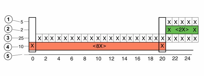 After the malfunction has been detected for the first time (driving cycle 0) the malfunction has been detected again in 9 of the first 20 driving cycles (counter 4 = 10). Using this, the conclusion can be drawn that in 11 driving cycles (20-9=11) the test has not been run or the malfunction has not been found, or a combination of these. After the last time that the malfunction was detected (in driving cycle 20), 5 driving cycles have passed (counter 1 = 5), where the test was run in 2 driving cycles without detecting a malfunction (counter 2 = 2).