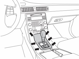 - Carefully prize away the panel around the gear selector lever using a weatherstrip tool. It is secured along the longitudinal sides with six catches. Start prizing in the rear edge of the panel.