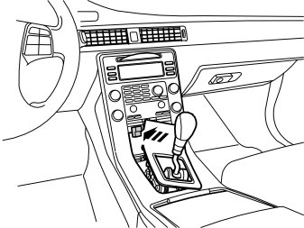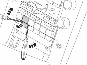 Note! Always prize against the surfaces that are subsequently covered by the gear selector lever panel (under the dotted line).