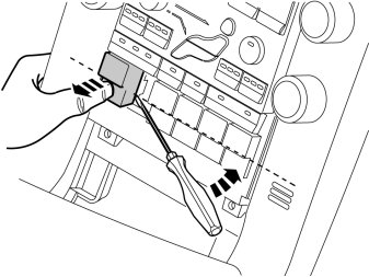 Hint: In the cases where the switch shall be located furthest out in the button row, first remove the closest adjacent dummy to avoid damaging the center console panel: